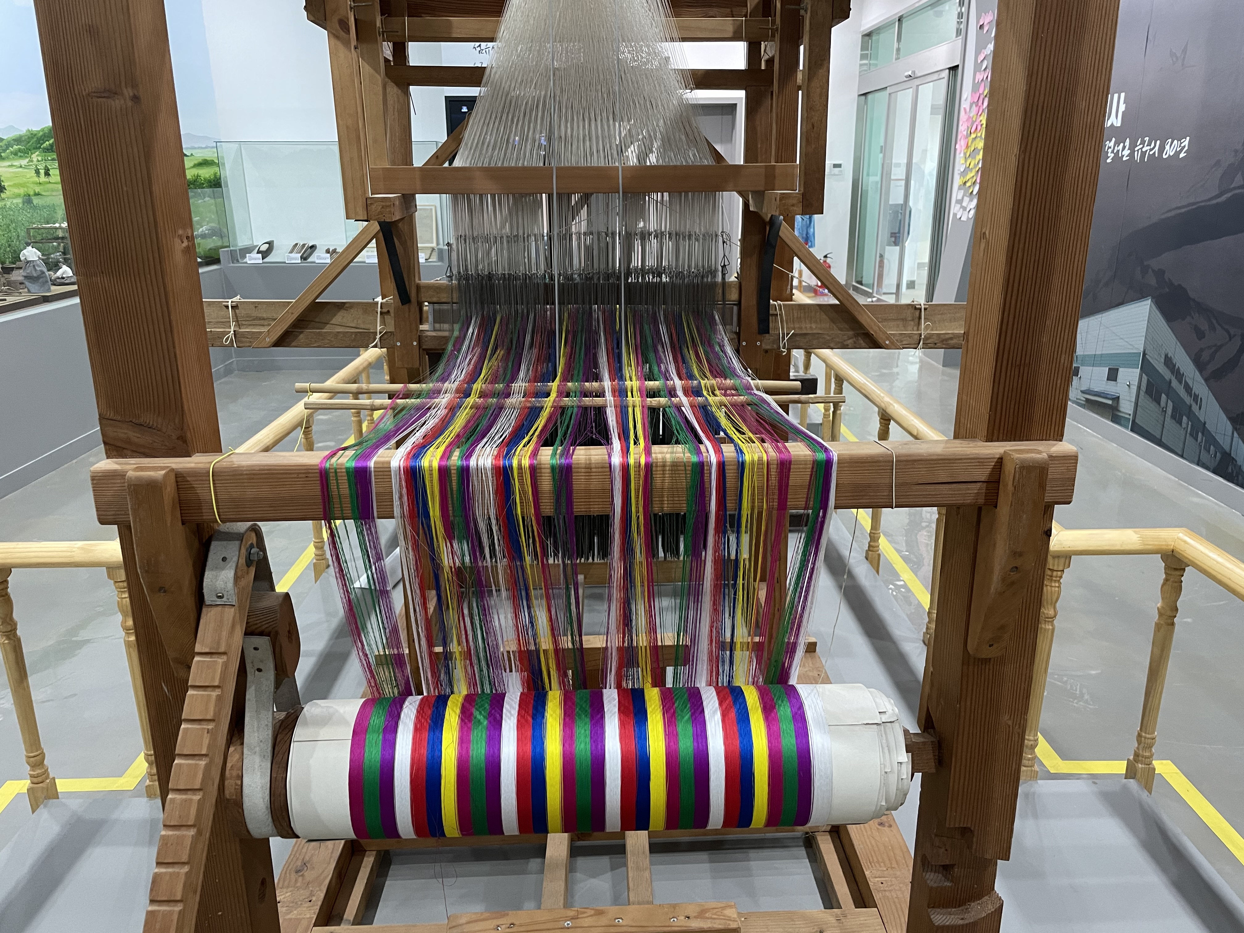 전시실 내부에는 직물과 관련된 다양한 도구를 전시한다. 꾸리깍지는 달랭이라고도 하는데 고장 난 자전거 바퀴를 업사이클링해서 만든 실 감는 기계다. 섬유 공장을 하는 집마다 가지고 있던 필수품이었다. 작태기는 감겨있는 실을 얼레에 옮겨 감는 기계로 1980년대 직물공장에서는 여기에 모터를 달아서 사용했다. 자카드 직기는 다양한 무늬의 형태로 직물을 짜내는 기구로 자카드(Jacquard)라는 프랑스인의 이름에서 따왔다. 이 기계는 종이로 된 펀치카드를 사용하는데, 화려하고 섬세한 문양을 표현할 수 있어 자카드로 짠 직물을 ‘직물의 꽃’이라고 부른다. 펀치카드만 보았을 때는 어떤 무늬의 천이 만들어질지 상상할 수 없다. 구멍이 많은 것은 정교한 무늬가, 구멍이 적은 것은 성긴 무늬가 그려질 것이라고 가늠할 수 있는 정도다. 유구에는 자카드 직물 특화생산지역답게 섬유역사전시관외에도 한국자카드섬유연구소와 자카드섬유마케팅센터가 있다.