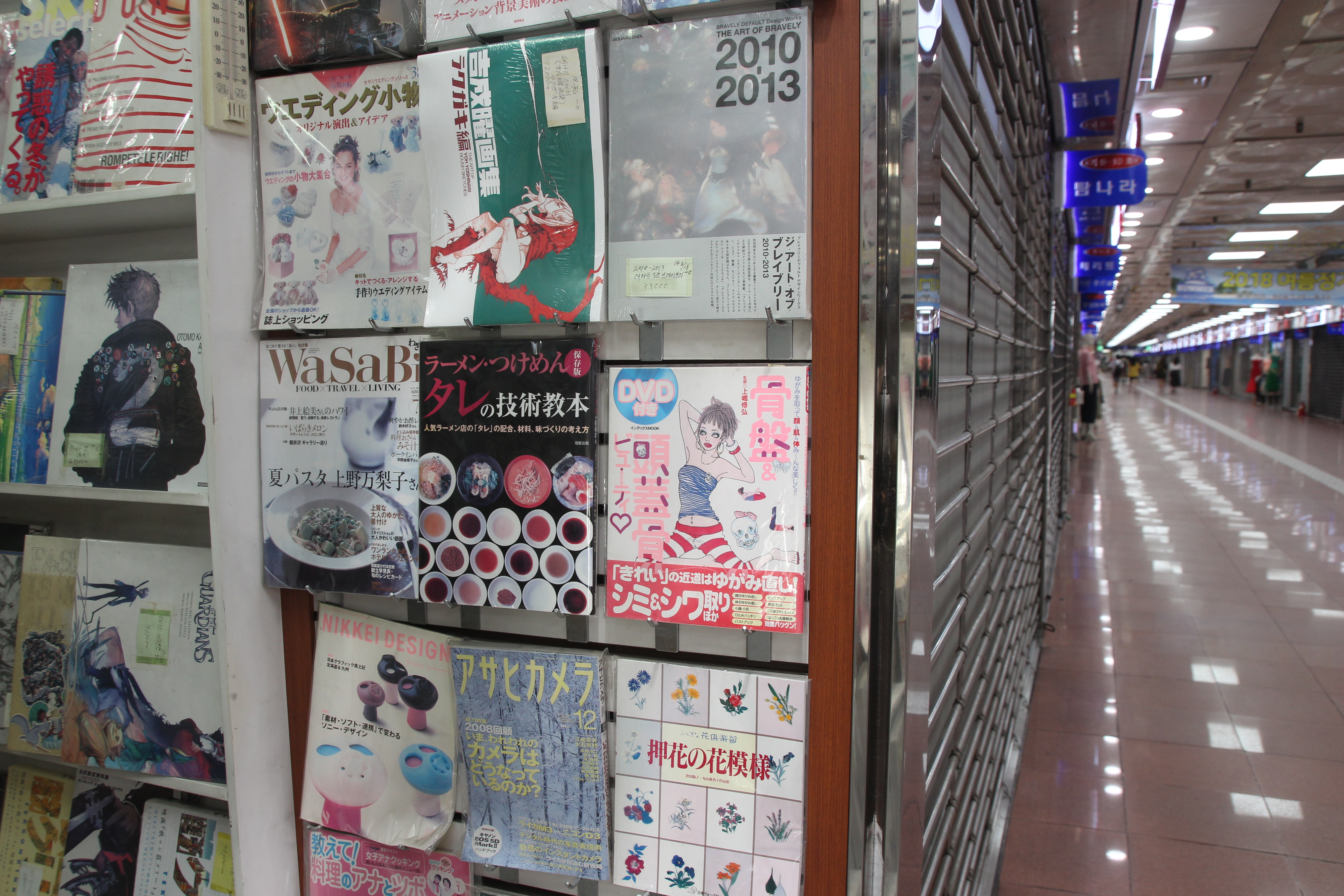 90년대 잡지부터 만화책, 애니메이션 포스터, CD, 지금은 사용할 수 있을까 싶은 비디오테이프 등이 해풍사를 가득 채운다. 판매는 할 수 있는 책인가 싶을 정도로 오래된 책도 더러 보인다. 패션 잡지부터 미용 잡지, 드로잉북까지 의외로 다양한 종류의 외국 서적이 속절없이 주인을 기다린다. 중간중간 한국 가수의 일본 앨범도 보인다.
