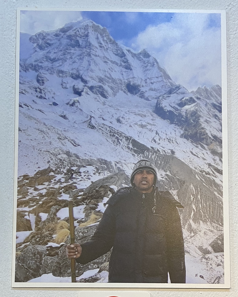 아저씨는 그를 달래주고 조언도 해준다. 그들의 대화를 다 이해하진 못하지만 아저씨는 진심으로 그를 위로한다는 걸 느낄 수 있었다. 대화에 낄 수 없어 나는 그들의 이야기를 들으며 가게를 찬찬히 본다. 들어올 땐 몰랐는데 가게 안은 꽉 차 보인다. 아저씨 가족사진도 보인다. 이곳은 네팔 가정집을 그대로 옮겨 온 것 같다는 생각이 든다. 고향 사람들이 드나들고 편하게 하루를 추억하며 또는 불평하며 잠시 쉬어가는 곳. 은행동에 자리 잡은 작은 대피소. 나는 그들의 대피소에 나만의 방식으로 쉬었다 간다. 아까 노래를 들으며 밥을 먹던 3명의 남자가 나간다. 그들에게 손짓하며 배웅하는 아저씨의 모습은 다시 산을 오르는 탐험가에게 안부를 건네는 듯 했다.