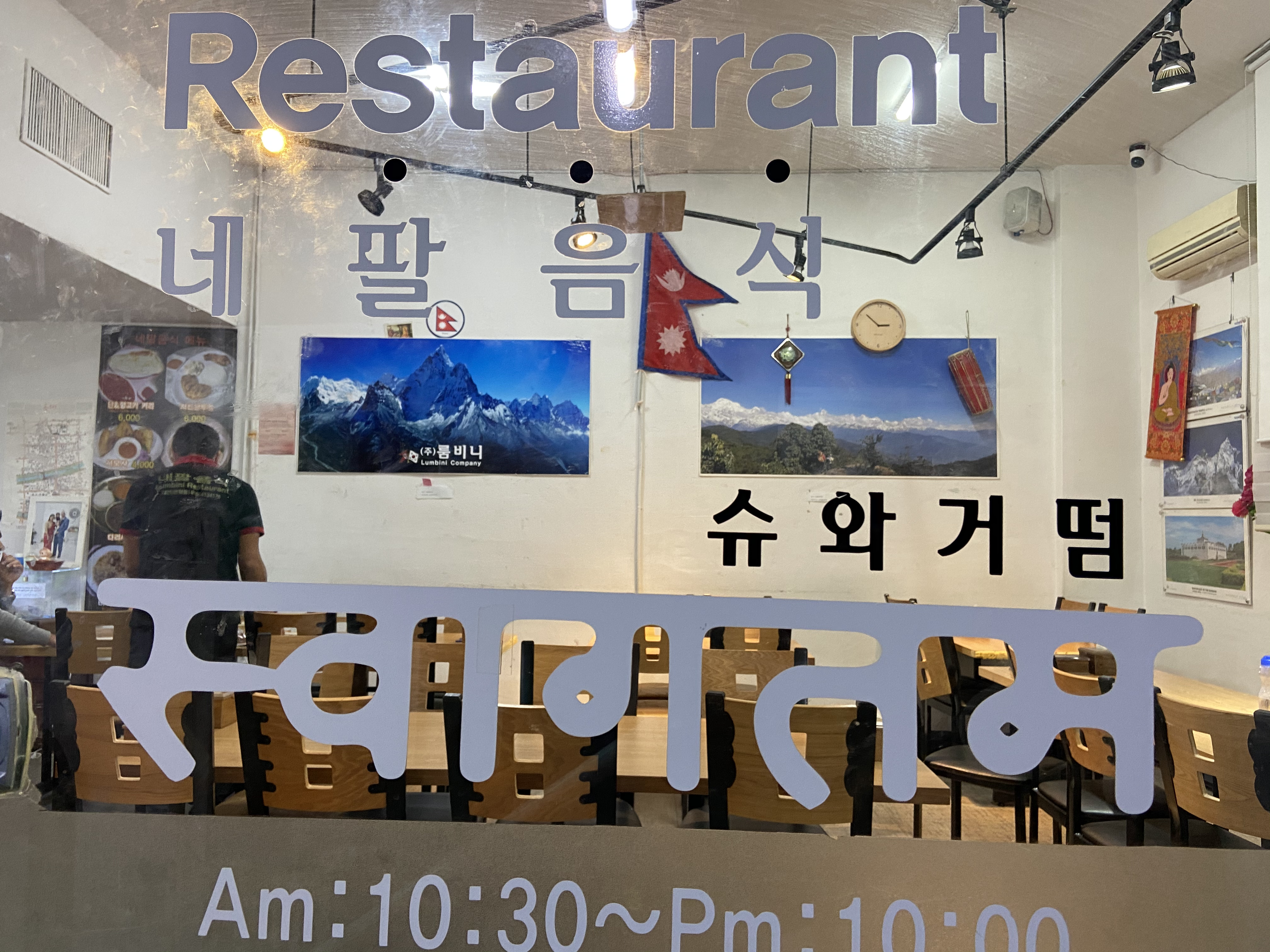룸비니 식당 주인아저씨 이름은 사르마 데벤드라. 올해로 41세다. 인드라는 인도에 나오는 신 이름이다. 인드라가 가뭄의 신 비트라를 물리친 후 데벤드라로 불렀다는 전설이 전해진다. 아저씨도 자신 이름을 소개하며 데벤드라를 신들의 왕이라 했다. 아저씨는 한국 유학 생활 덕분인지 한국어를 잘했지만 가끔 잘 알아듣지 못 하는 말도 있었다. 그럴 땐 옆에서 수시라 씨가 네팔어와 한국어를 번갈아 가며 인터뷰를 도와줬다. 아까 콩 수프 레시피를 알려준 그녀는 2011년에 네팔에서 한국으로 시집 왔다고 한다. 한국 이름은 이수민. 인터뷰가 시작되자 자연스럽게 주인 아저씨 옆에 앉은 그녀는 가끔 나의 질문에 주인아저씨가 답하기 전에 먼저 답해주기도 했다. 자주 놀러 와 아저씨 사정을 잘 안다 했다.