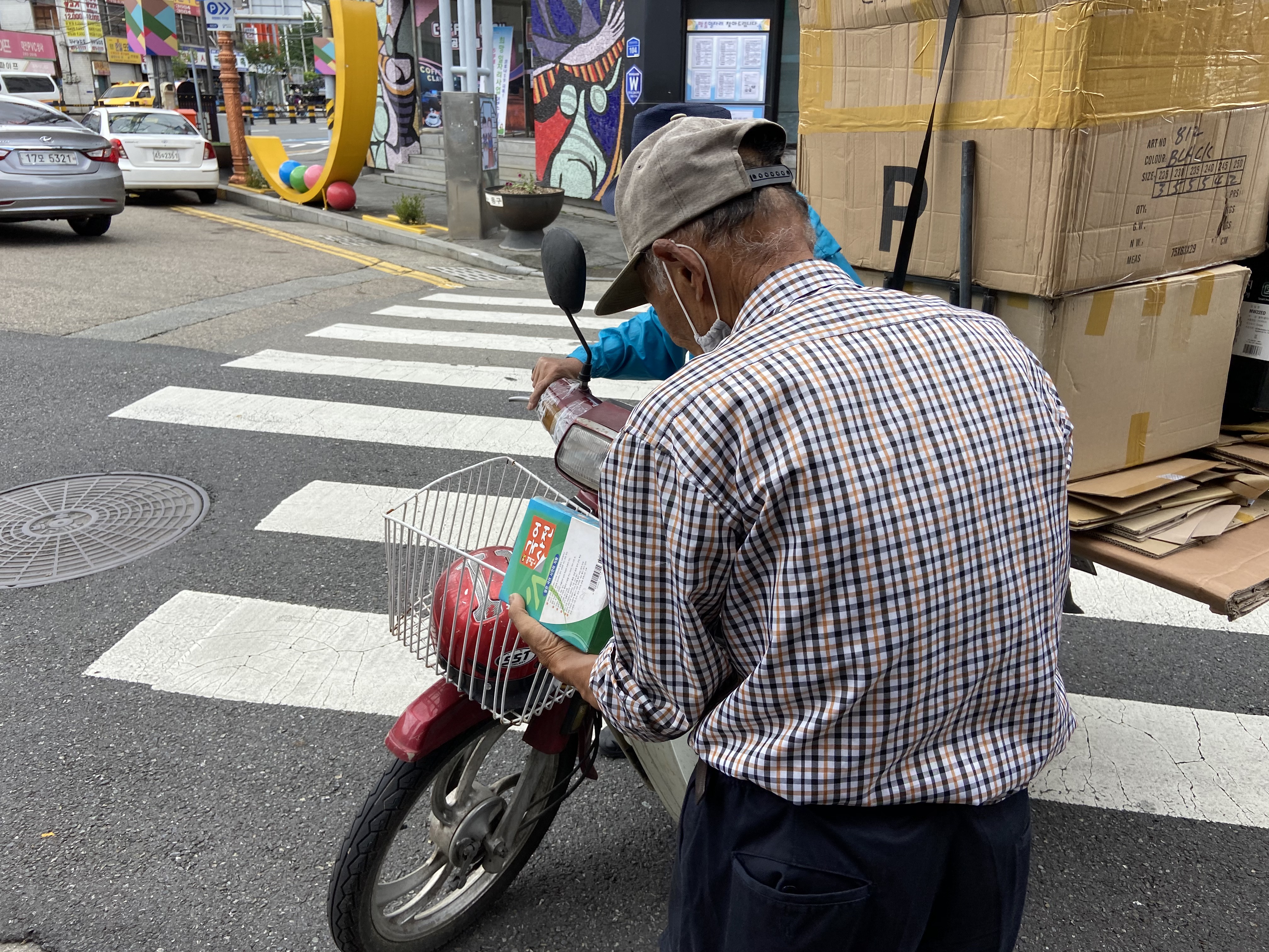 책방에 앉아 있으니 멀리 떨어져 바라보던 모습과는 다른 책방의 바쁜 일상이 보이기 시작한다. 책방 앞으론 많은 리어카와 오토바이가 멈춘다.