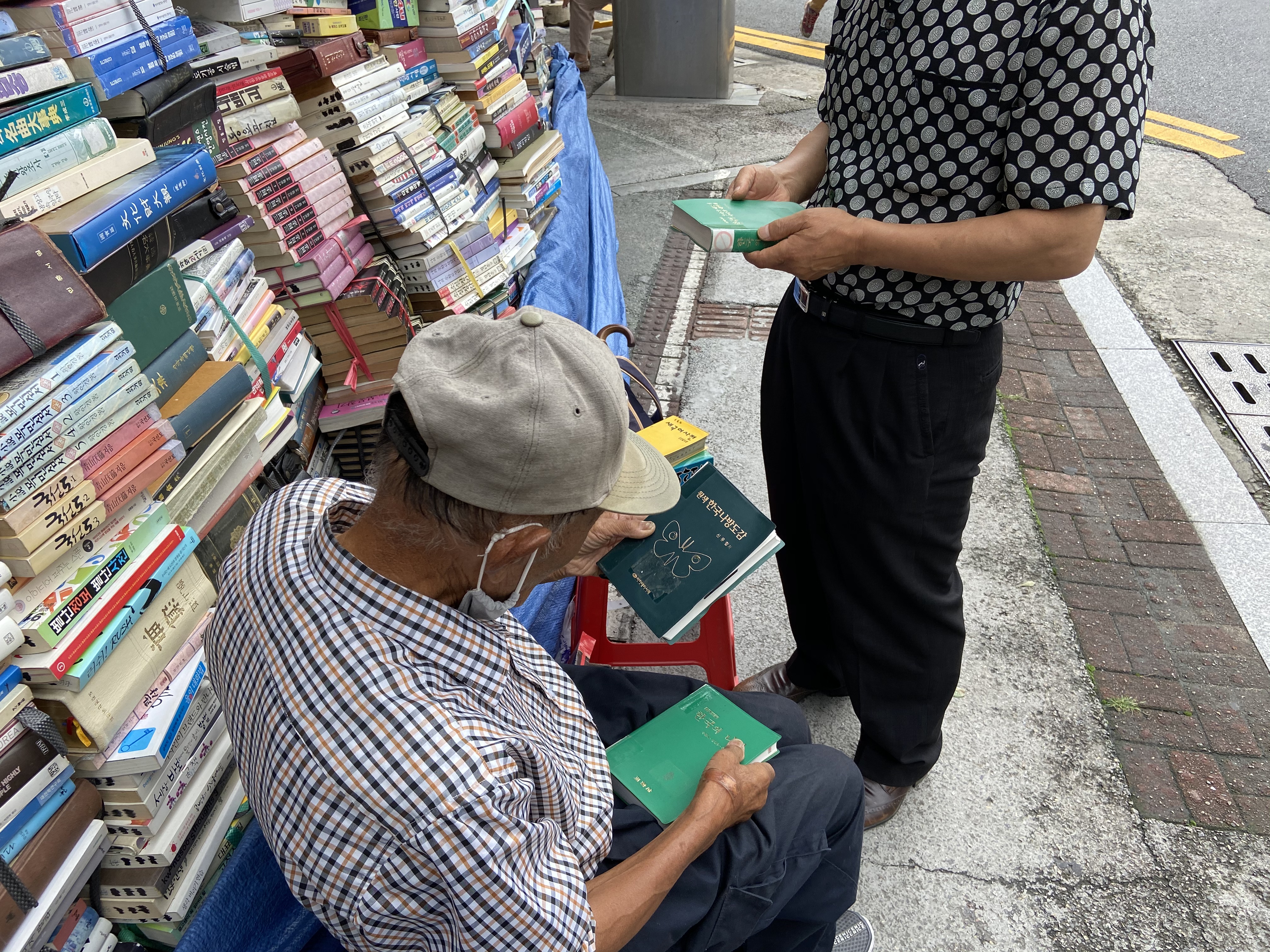 “저 책 원가는 삼만오천 원이야. 그래도 필요한 사람에겐 좋은 가격에 주고 있어. 적당하게 가격을 받아야지. 책이 갈 사람에게 안 가면 안 되지.”
