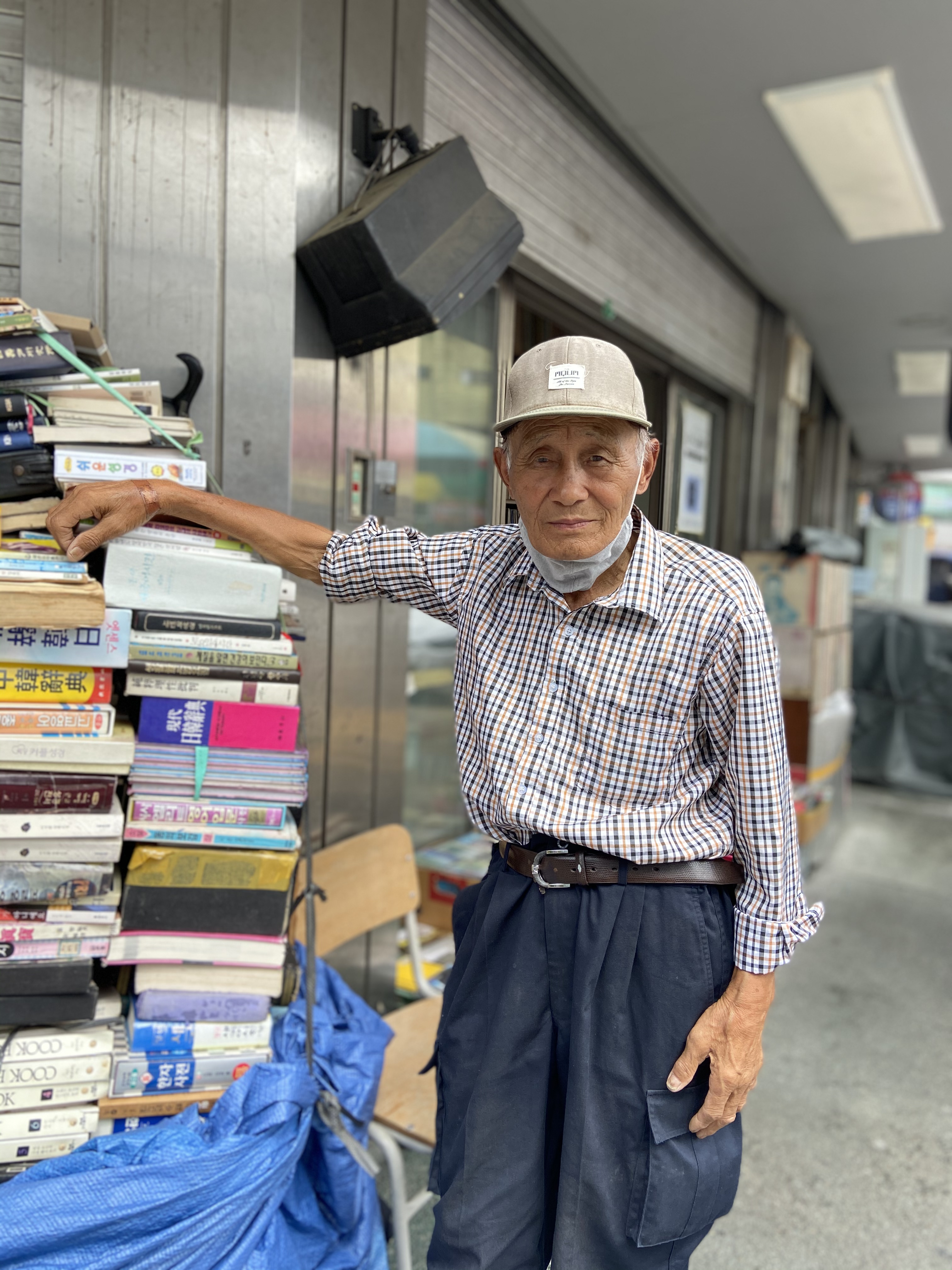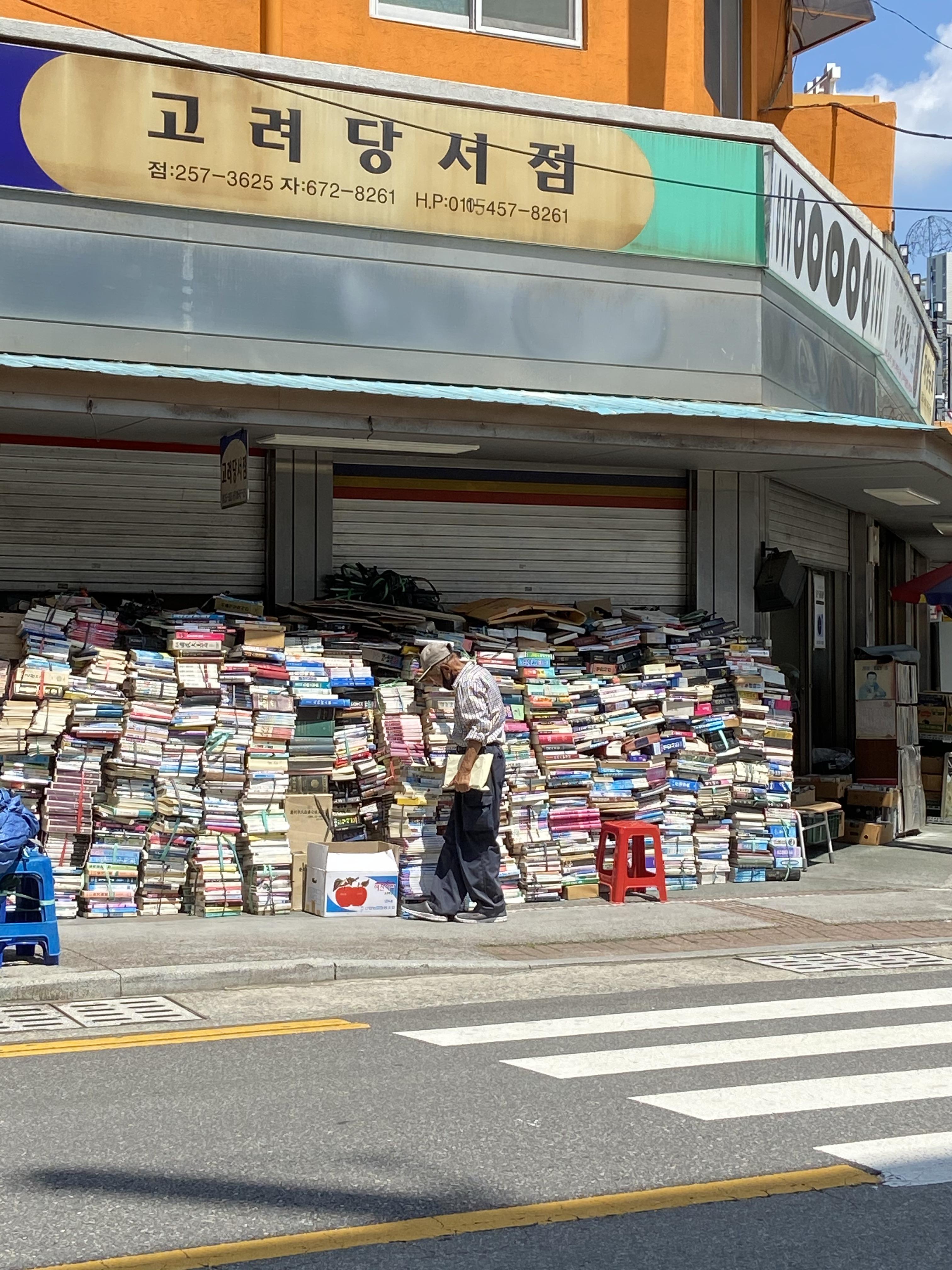 헌책방 거리 끝에 할아버지 한 분이 플라스틱 의자에 앉아 있다. 굽은 허리, 베이지색 야구모자를 눌러 쓴 할아버지는 책방에 가득 찬 책에 밀려 거리로 나온 듯하다. 책방 앞엔 책 무더기가 가게 지붕에 닿을 듯이 쌓여 있다. 책에 자신이 있을 곳을 양보하는 사람이라면 책에 관해 이야기 할 수 있을 것 같다.