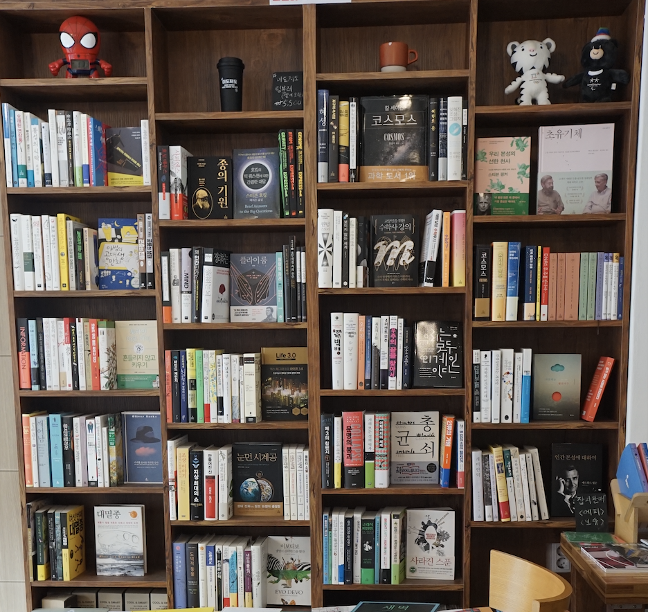 책방 한 면엔 과학 관련 서적이 많이 꽂혀있다. 근처가 연구단지기도 하니 혹시 대표가 철저한 이과생이 아닐까 했지만 정말 아니었다.