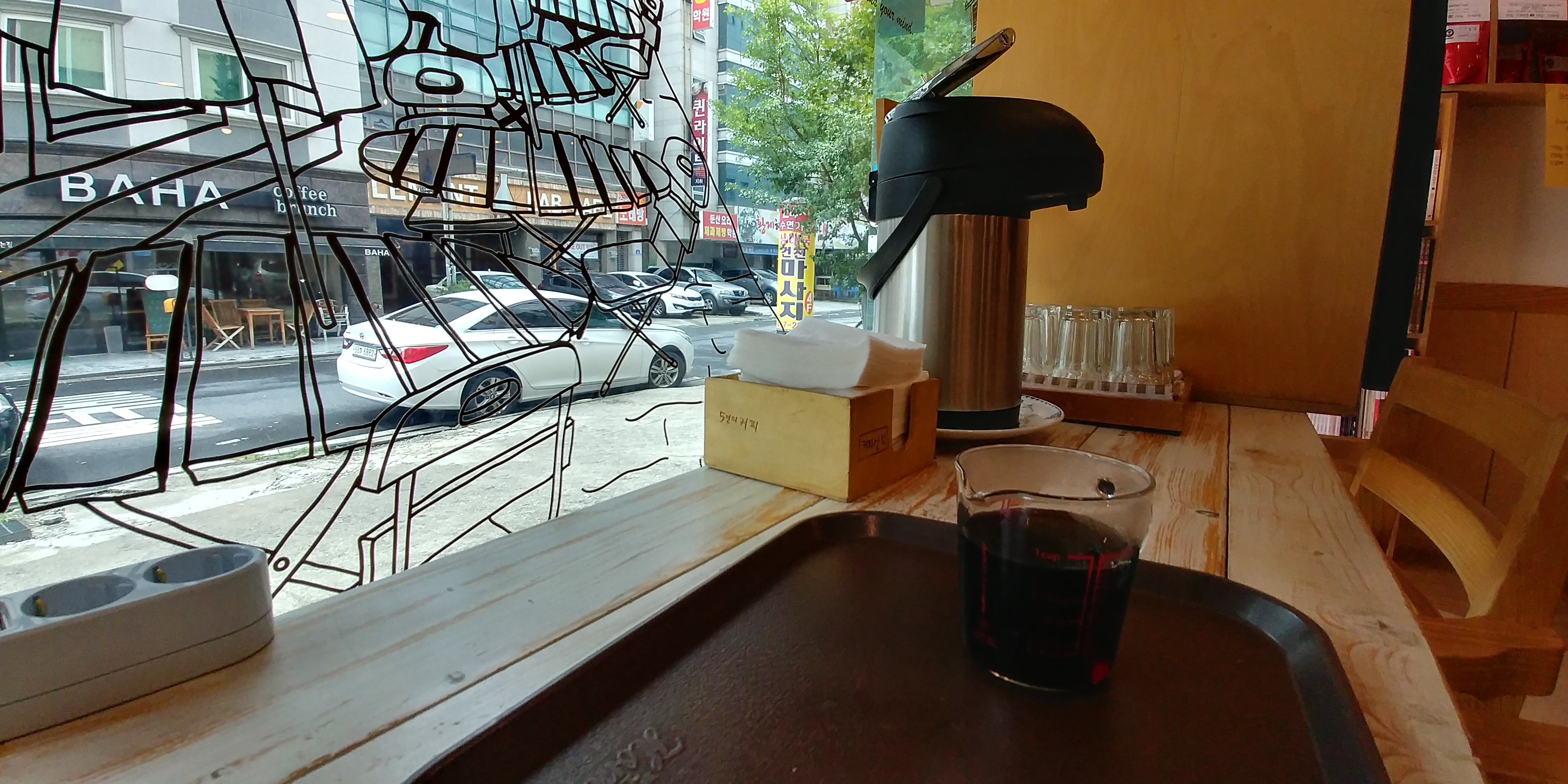 이른 아침에 왔는데도, 여기 카페는 여러 손님들이 왔다 갔다. 나처럼 드립커피를 시키는 사람은 드물고 거의 아.메.리.카.노.를 시키고 들고 나간다. 그 아메리카노 커피 이름은 또 어디에서 왔을까. 이.탈.리.아.노 커피 이름은 왜 없지. 스멀스멀 오만 생각이 오간다. 호!