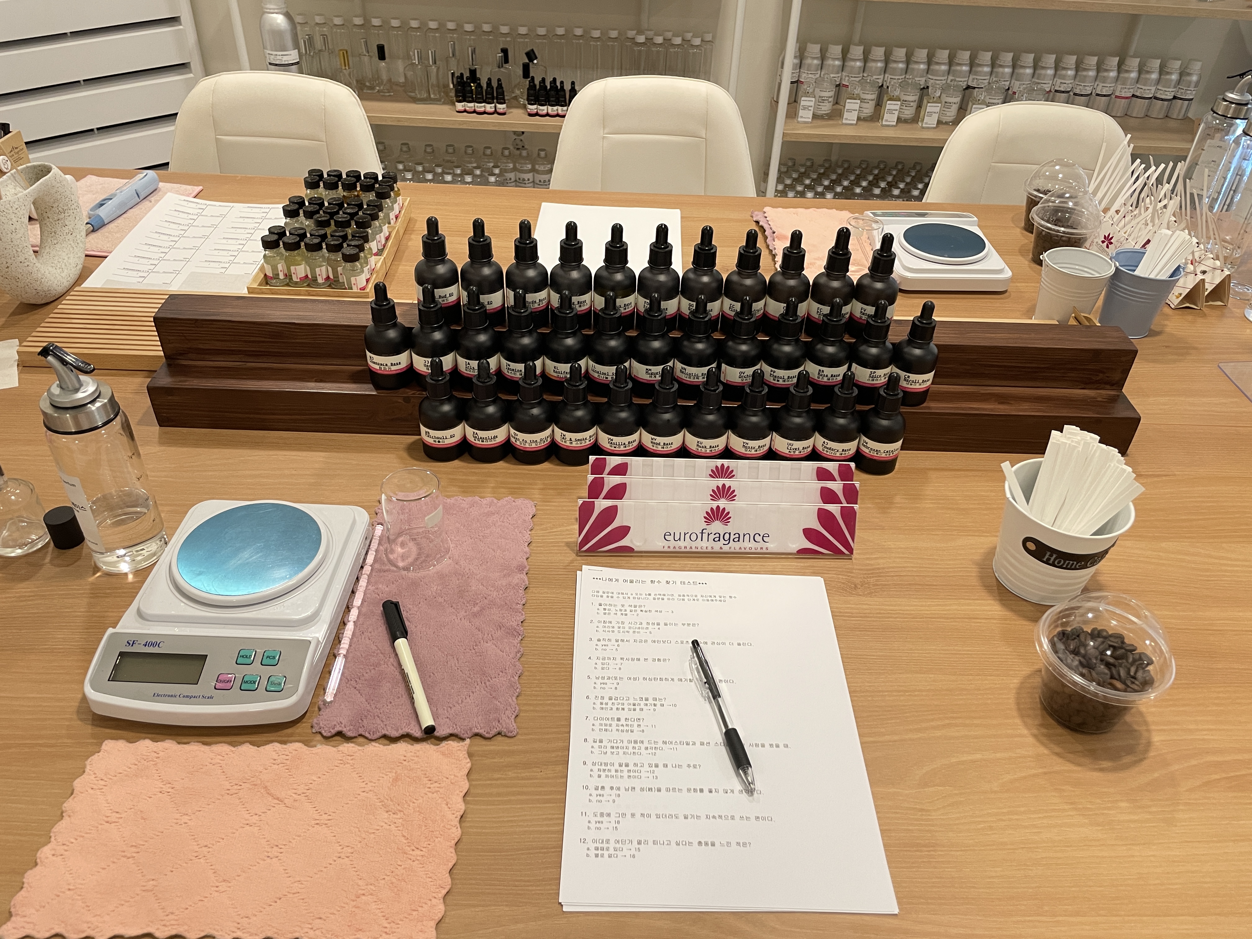 “혹시 이 향료들을 가지고 블라인드 테스트를 하면 몇 개나 구분 가능하신가요?” 라는 질문에 자신 있게 다 구분할 수 있다는 답변이 돌아왔다.