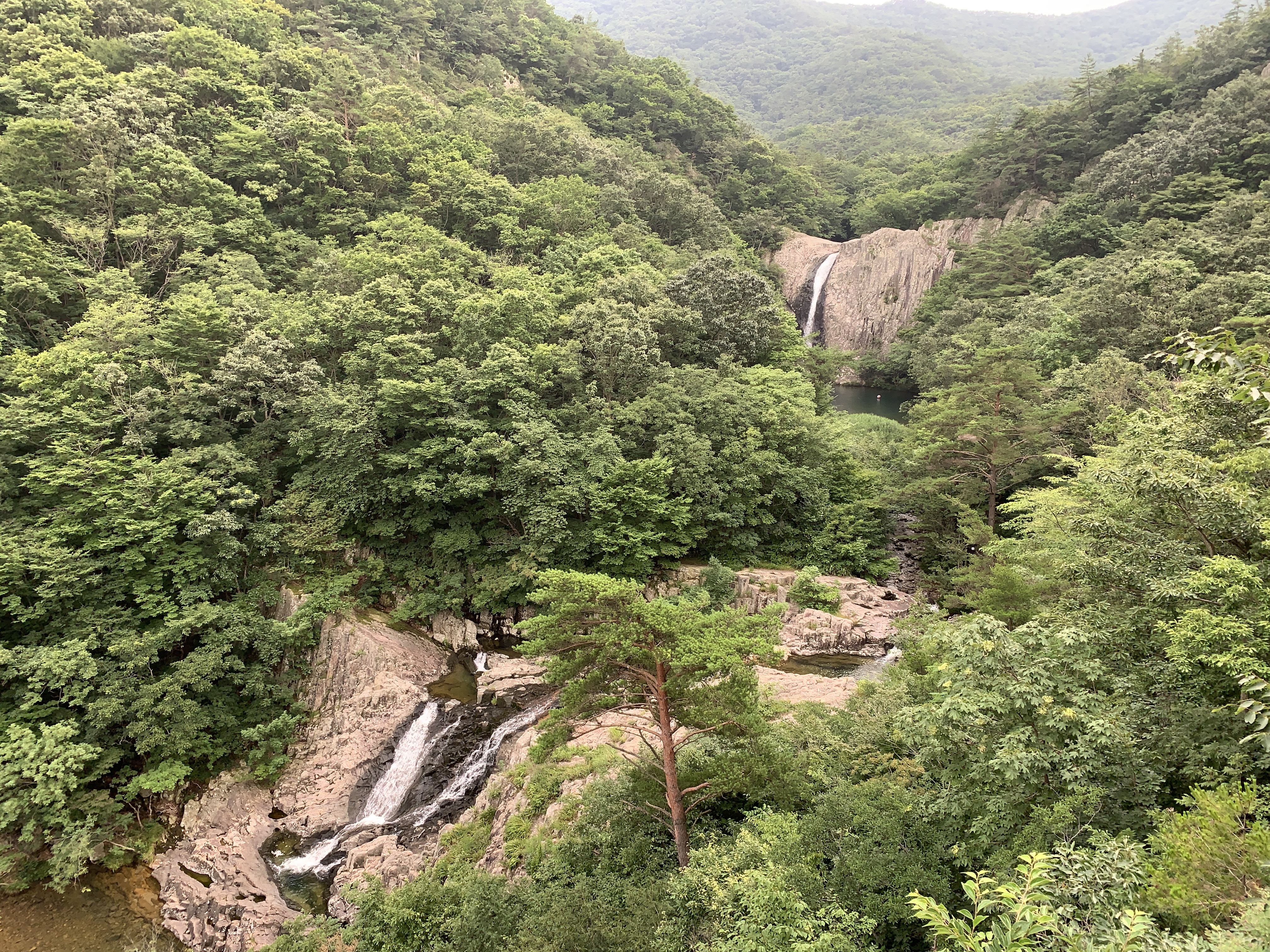직소폭포는 변산국립공원 품 안에 들어서 있다. 산림지역인 내변산에 있는데, 차로 구불구불한 길을 열심히 오르고 나면 피톤치드 향이 나는 초록빛 공간이 펼쳐진다. 입구로 들어서면 코스 안내문 표시가 나온다. 두 코스 중 마음에 드는 길로 골라 가면 된다. 우리는 내소사 코스로 갔다. 졸졸졸 흐르는 계곡을 따라 걷다 보면 대나무 숲이 보인다. 대나무 잎이 바람에 사르르 흔들렸다. 간밤에 내린 비 때문인지 한층 더 진해진 대나무 향이 마스크 틈으로 들어왔다. 전망대를 지나면 탁 트인 직소천이 나온다. 푸른빛으로 가득한 이곳은 물도 푸른 녹색이다. 내소사 코스 시간이 짧은 데엔 다 이유가 있었다. “여기 분명 산책로라고 하지 않았어?” 슬슬 폭포가 나올 때도 됐는데, 아무리 걸어도 물소리조차 들리지 않아 물어봤다. “그러게, 우리 왜 갑자기 산 타고 있냐?” 분명 하천 나올 때까지만 해도 너무 좋았는데 갈수록 계단이 많아진다. 길도 점점 가팔라지고 호흡이 가빠졌다. 그렇게 계단을 3번 정도 탄 후에야 저 멀리서 시원한 소리가 들렸다. “야 물소리 들린다. 거의 다 왔나 봐” 앞서가던 친구 목소리가 밝아졌다. 얼마나 걸었을까 마지막으로 계단을 올라가니 폭포가 보였다. 흰 물줄기가 떨어지는 걸 보며 성취감을 느꼈다. 다리는 후들거리고 옷도 땀에 젖었지만 마음만은 상쾌했다. 자연이 주는 선명한 행복이다. 이후 우리는 여기까지 온 스스로를 대견하게 여기며 15분 동안 아무것도 하지 않았다.