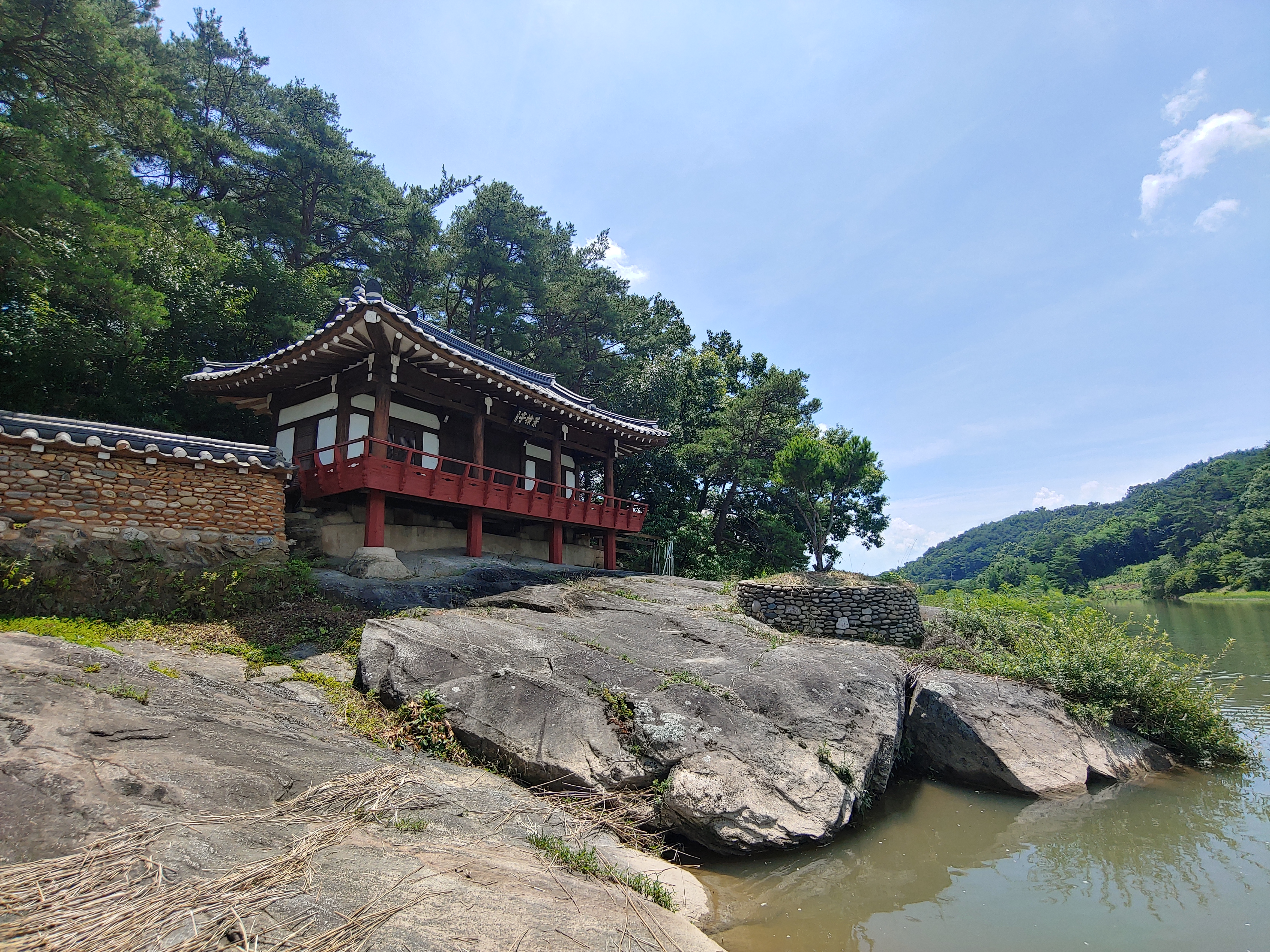 경체정 입구는 때때로 닫혀있을 때도, 열려있을 때도 있다는 후기가 있어 조마조마했으나 유람 당일에는 다행히 열려있었다. 입구를 지나서 경체정에 올라 금천을 내려다보니, 왜 이곳을 ‘구곡’으로 선정했는지를 한 눈에 알았다. 바로 앞엔 금천이 흐르는 물소리와 경치, 적당한 그늘과 선선한 바람을 맞을 수 있는 정자가 있다면, 선비들이 사유하기 딱 좋은 환경이 아닌가. 다만, 종종 낚시하러 오는 사람이 있어서 그런지 마을 어르신들이 통기타 가방을 낚시 가방으로 오해하며 “깔끔하게만 잘 정리하고 가시라”는 웃픈 상황이 벌어지기도 했다.