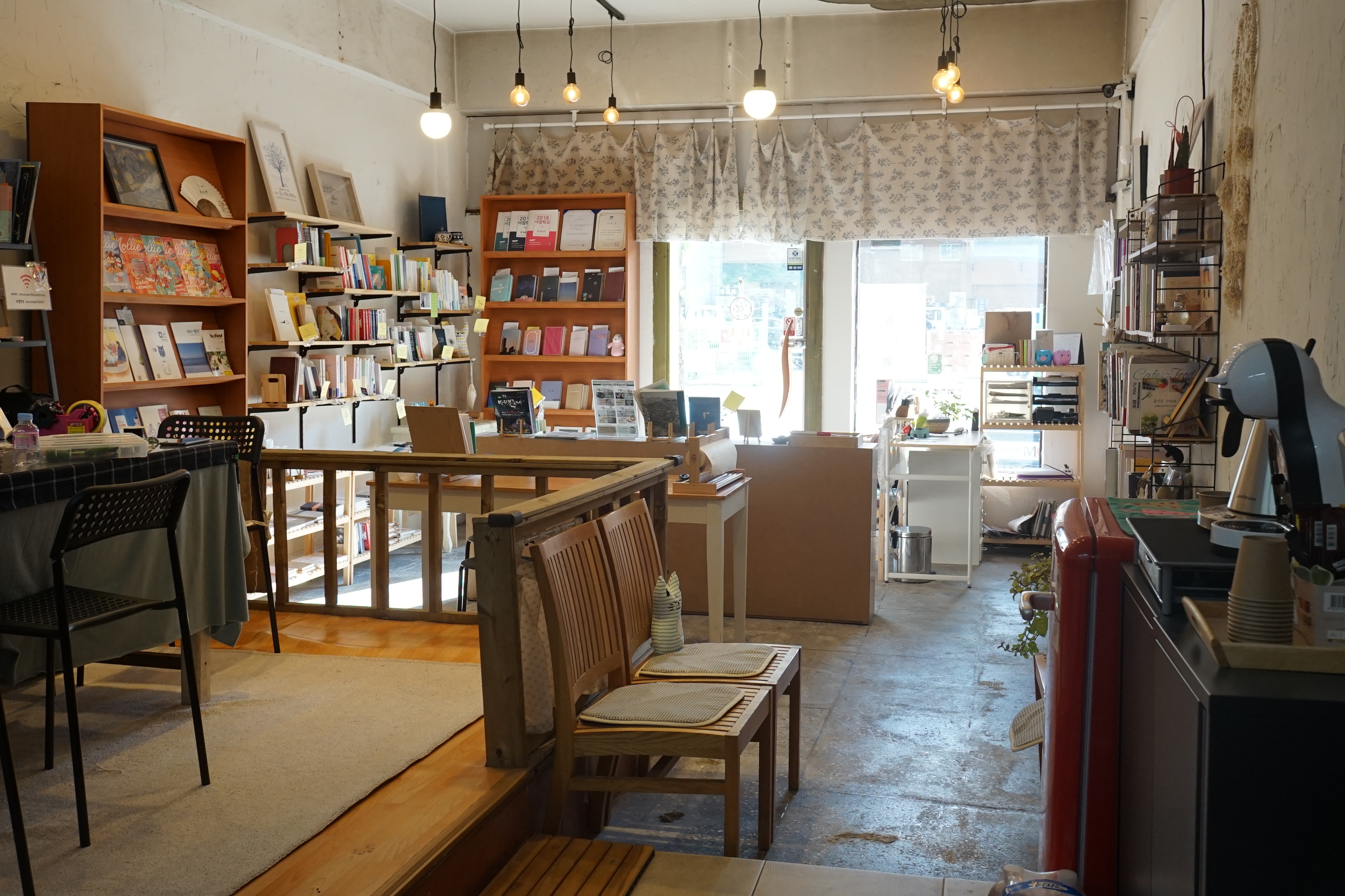 “그때 여러 가지 상황이 엄청나게 불만족스러웠던 건 아니에요. 지금 생각해 보면 일에 대한 권태가 왔던 거 같아요. 아이들에게 행복을 물으면서 제 행복에 대한 고민이 시작된 거죠. 내가 제일 행복하게 잘할 수 있는 일이 무엇일까 고민하다가 제가 하고 싶은 일을 할 수 있는 공간이 필요하겠다는 생각이 먼저 들었어요. 평소에 책을 좋아해서 그 공간이 서점이면 좋겠다는 생각이 들었죠.” 서점을 열기로 마음먹었지만, 시작이 쉽지만은 않았다. 막연하기만 했던 계획을 구체화하기 위해 서울로 발걸음을 옮겼다. 대전에서는 마땅히 교육을 받을 수 있는 곳이 없었다. 서점을 준비하던 2017년 하반기는 서울에 독립서점이 붐처럼 생겨나기 시작하던 때다. 서울의 서점학교에 다니며 서점에 대해 배우기 시작했다. 대전은 물론이고 서울의 독립서점을 방문하며 운영방식 등도 배웠다. 자신이 생각하는 독립서점의 가치에 대해 다시금 정리해 보는 시간이었다.