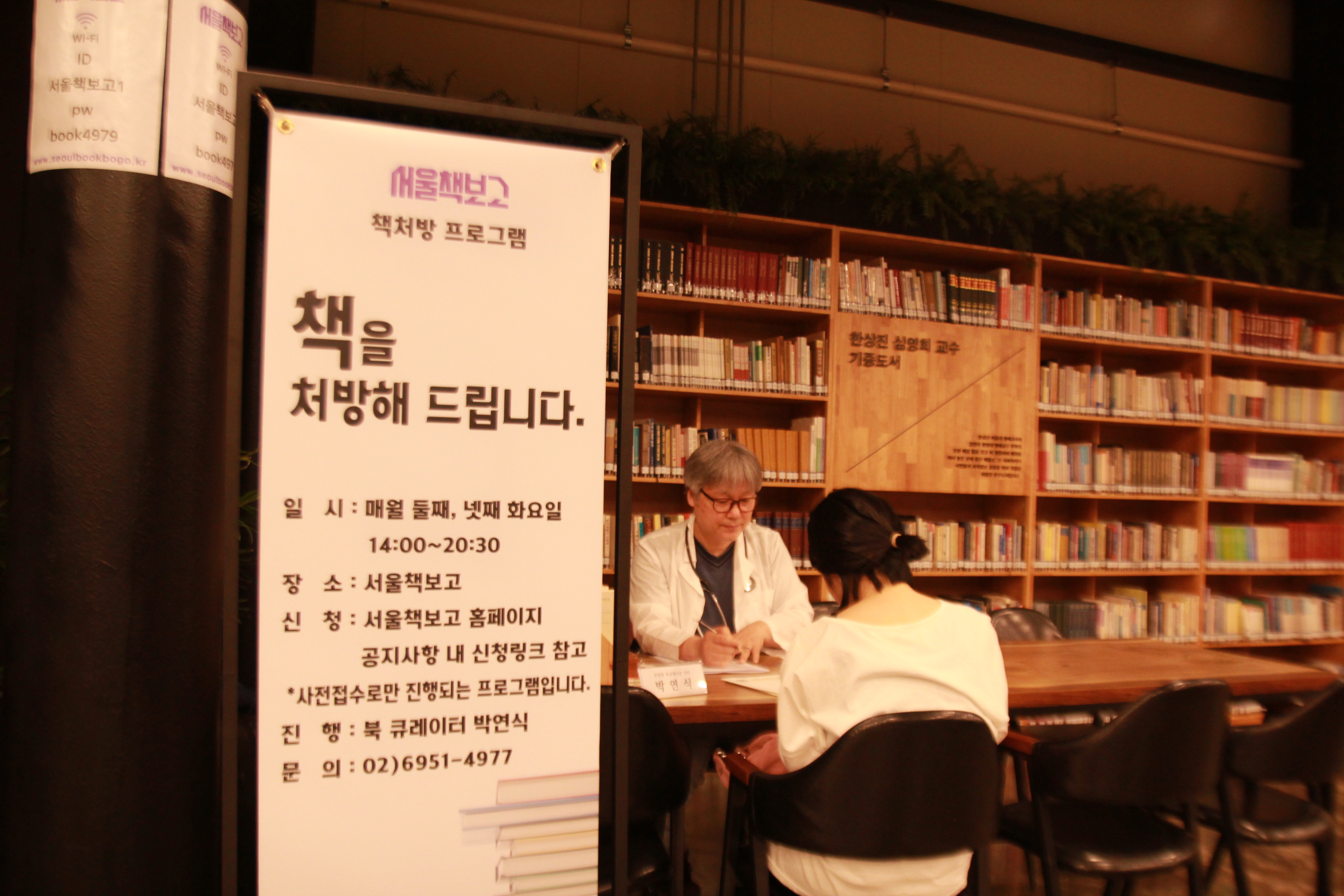 서울책보고는 매월 둘째, 넷째 화요일에 책 처방 프로그램을 운영한다. 어떻게 진단해 줄까 궁금해 사전예약제인 책 처방 프로그램을 신청했고, 총 다섯 권의 책을 처방받았다. 의사 가운을 입은 북 레시피 닥터는 상담자가 작성한 자료로 대화하며 정성스레 책을 처방한다. 서울책보고는 책 관련 문화 콘텐츠를 시민들에게 공급하고 복합문화공간의 역할을 하는 동시에 영세한 헌책방지기들과의 상생을 부가적으로 수행한다. 한 시간가량의 책 처방 프로그램에서 책을 처방받고 나오다 계산대에서 나누는 대화를 엿들었다. 허허 웃으며 한가득 올려놓은 책을 계산해 달라는 할아버지와 웃으며 죄송하다 하는 직원.