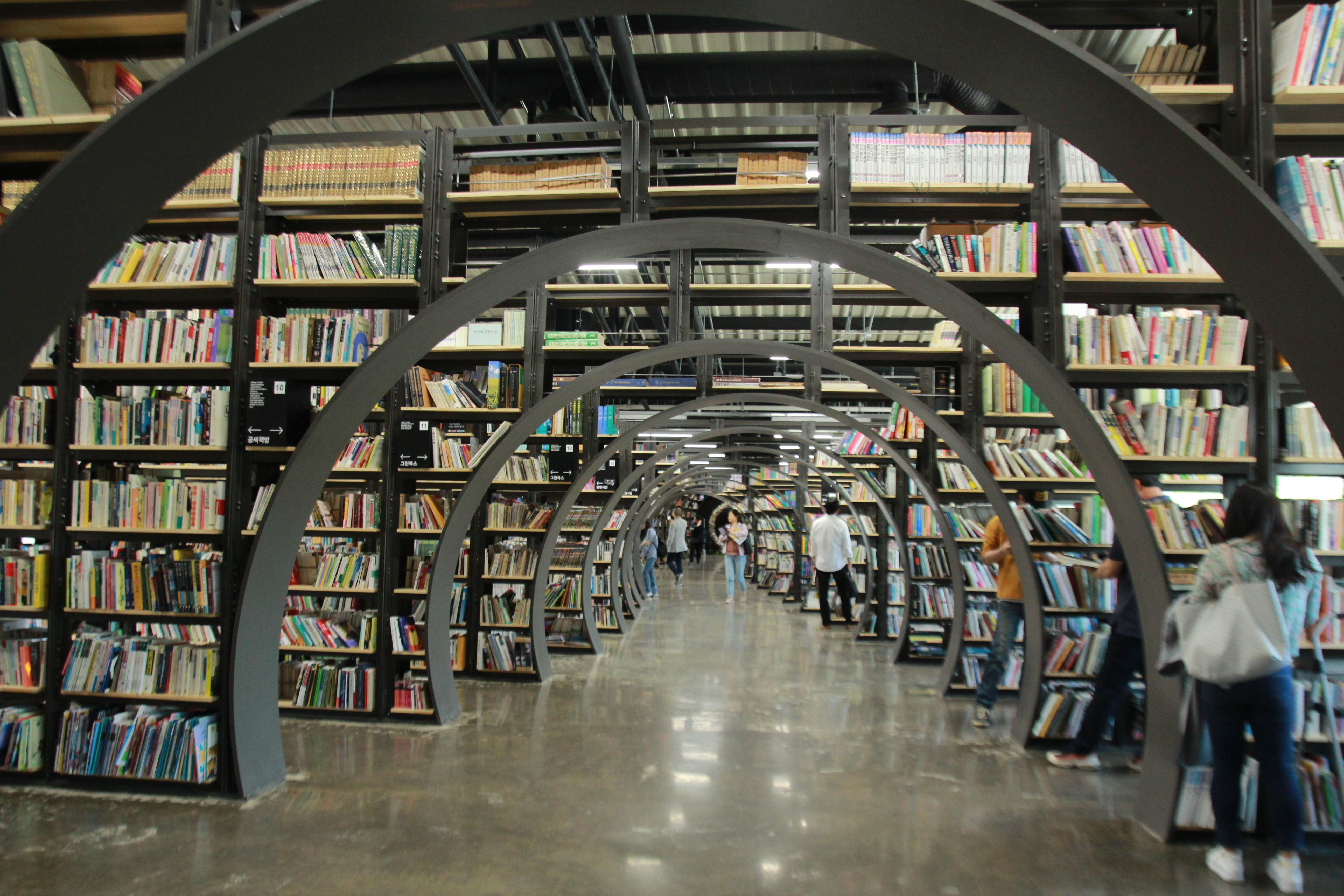 잠실나루역에 도착했다. 1번 출구로 나가 왼편을 바라보니 납작하고 긴 서울책보고가 보인다. 평일 낮임에도 많은 사람이 왕래한다. 개관 소식을 접한 당시의 설렘을 그대로 안고 입구로 향했다. 서울책보고는 지난 3월 27일 개관했다. 서울시 소유 신천유휴지 내 기업 창고로 쓰던 공간을 시민들을 위한 문화복합공간으로 재탄생시켰다. 1,465m² 규모의 국내 최초 초대형 공공 헌책방이다. 서울책보고는 서울시에서 기획하고 서울도서관이 운영한다.