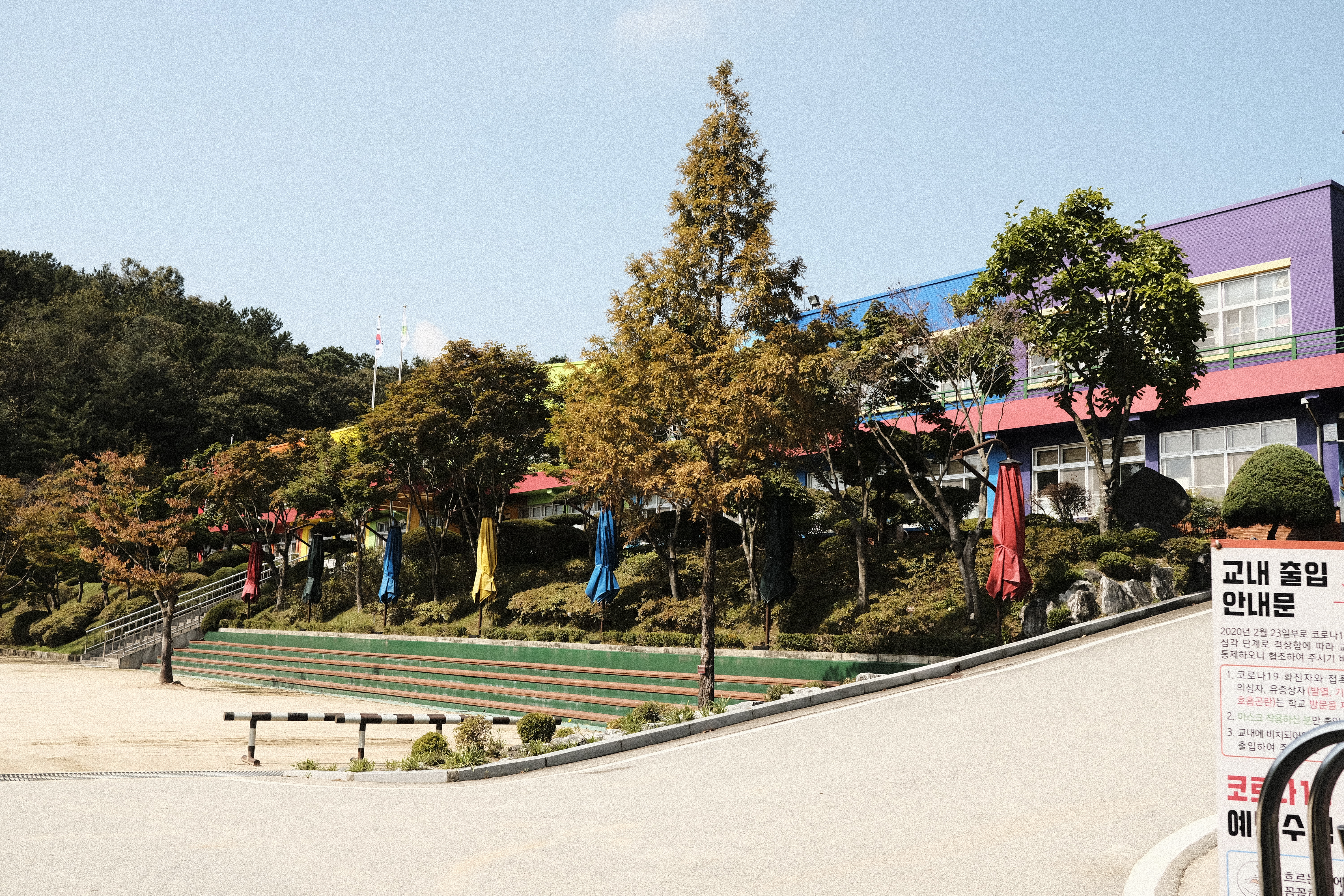 잠시 숨을 돌리고 계속 걸었다. 무지개색 남선초등학교를 지나 계속 걸었다. 송정동이다. 휴대폰이 하루 목표 걸음 수를 채웠다며 울렸다. 건강 관리 앱을 켜보니 할증이 붙은 택시 미터기처럼 걸음 수가 올라갔다. 가을을 만끽하며 걸었다. 안내자는 끝이 가깝다며 조금만 더 힘을 내자고 했다. 우리는 송정동의 끝자락으로 향했다. 애견 카페가 있고 저 멀리 아파트의 끝자락이 보였다. 계룡시의 아파트다. 밥 냄새가 가시고 도시의 냄새가 났다. 대전과 계룡의 경계까지 걸었다.