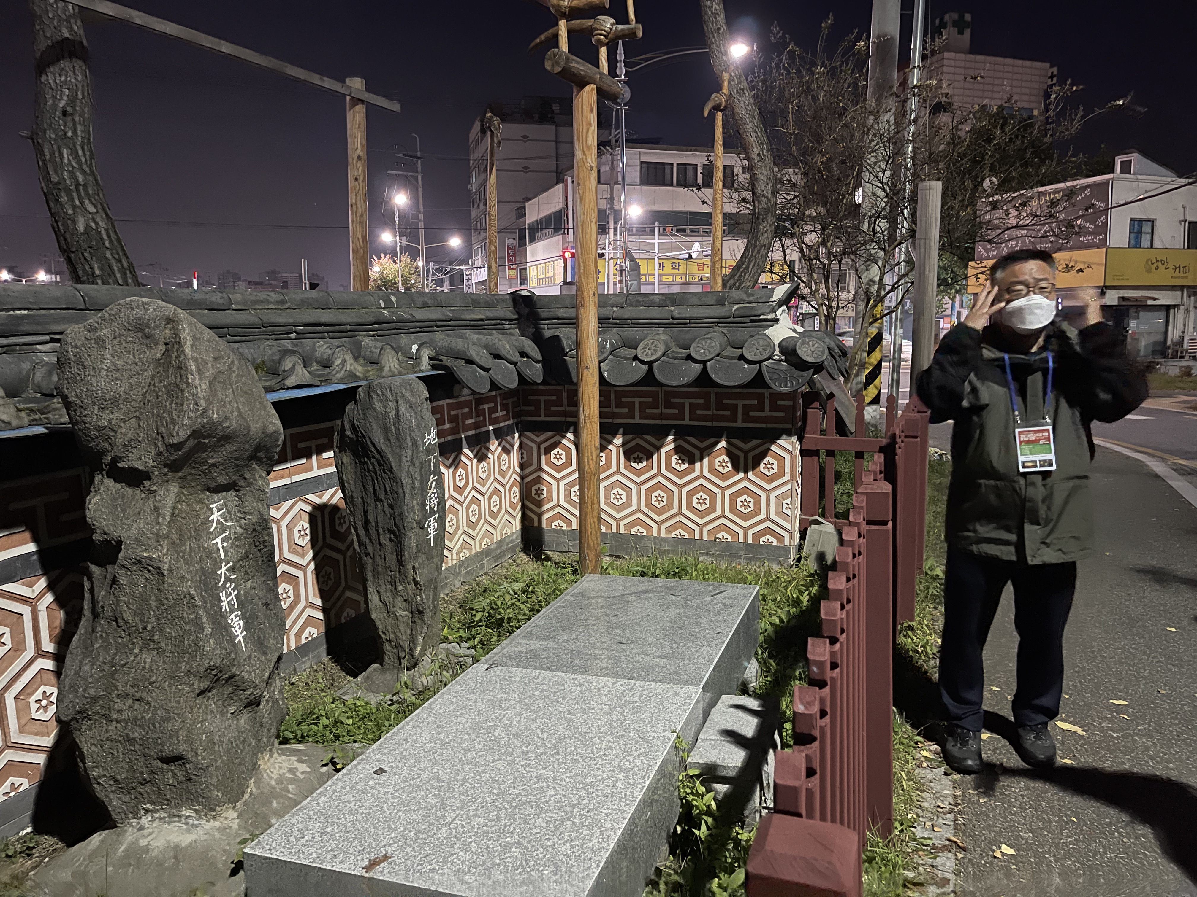 다리를 건너 대동 돌장승을 만났다. 석장승 주변을 한옥 느낌의 담장으로 두르고 앞에는 대리석으로 만든 상석도 두었다. 주변에 소나무도 정성껏 심었다. 일제 강점기에 지은 다리와 우리 전통문화를 간직한 석장승이 한 공간에 있다.
