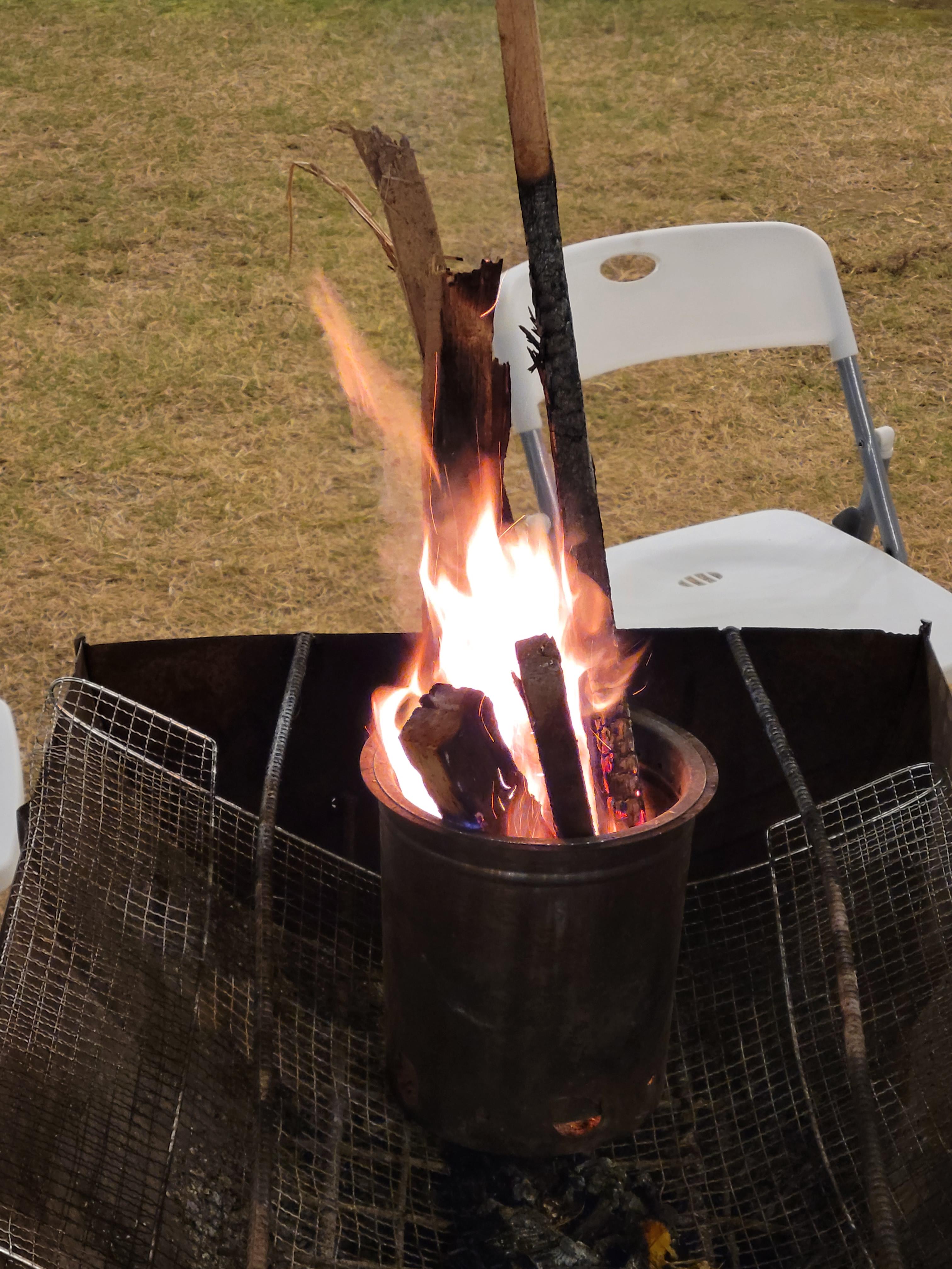타고 있는 불 앞에서