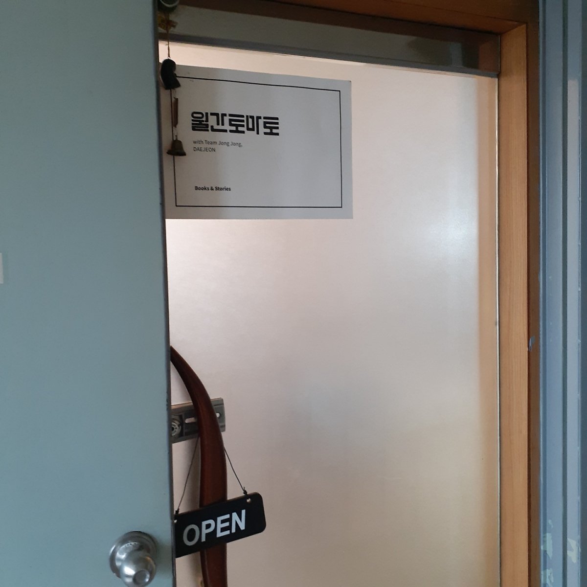 왼쪽 문에 작은 종이가 붙여져 있었다. 글이 재미있어서 피식 웃었다.