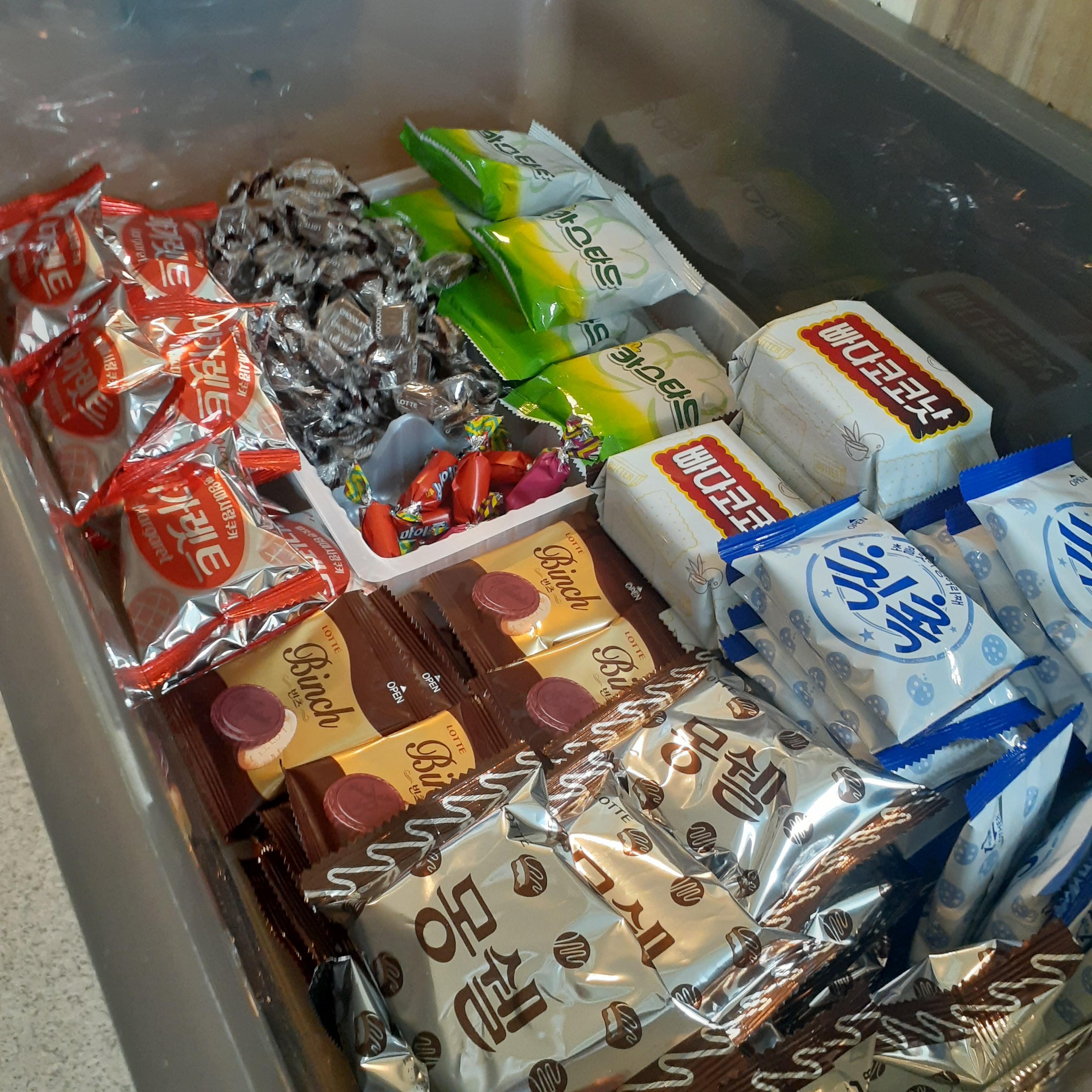 소중한 간식들을 당-콤 박스에 넣었다.