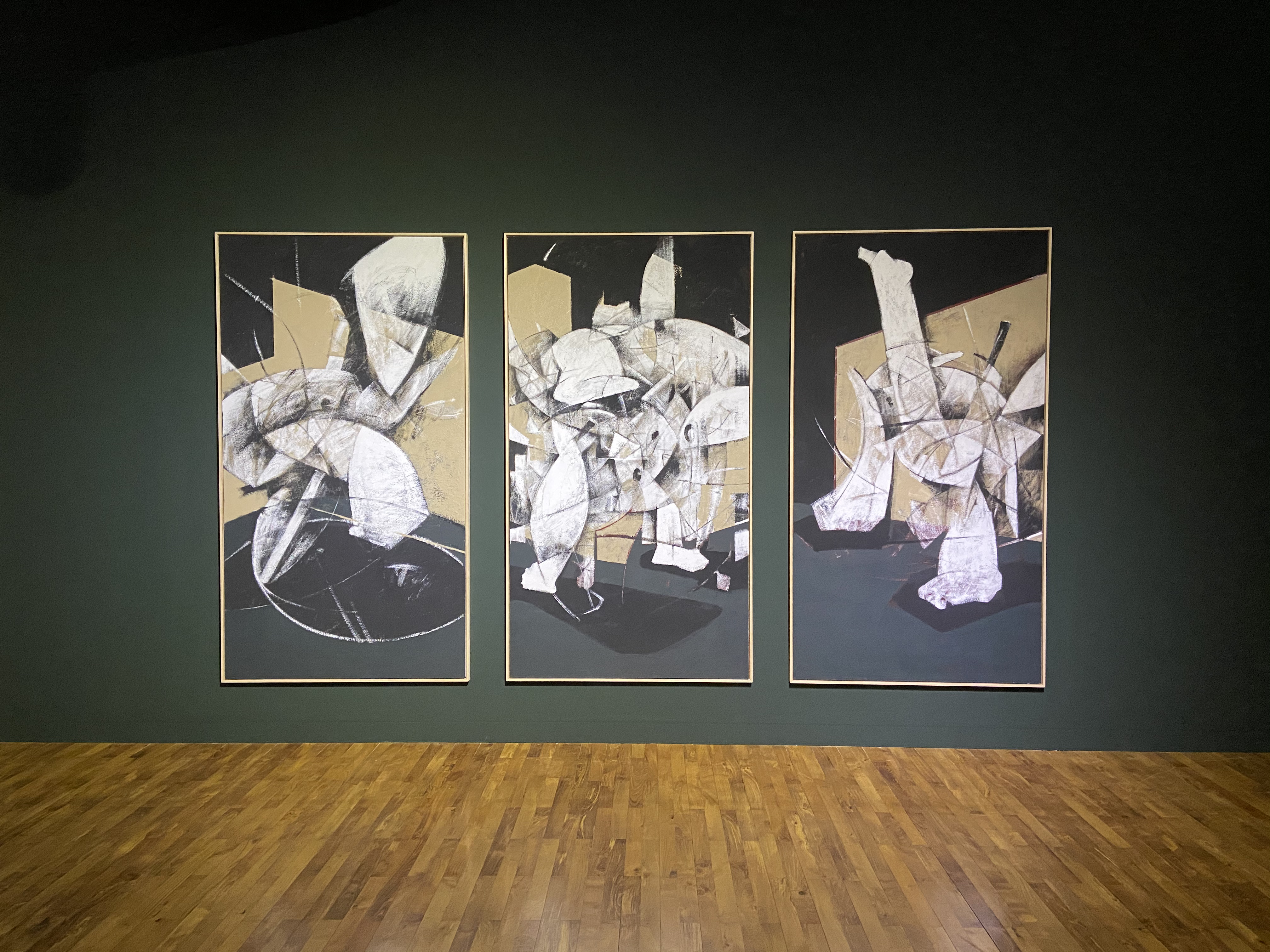"짐승은 자유롭잖아요. 그림을 보시면 짐승 모습 피사체는 틀에 갇혀 있어요. 이 짐승은 사람이기도 해요. 자유를 갈망하는 짐승과 그것을 통제하려는 힘 사이에서 발버둥 치는 것을 추상적으로 그린 그림이에요."