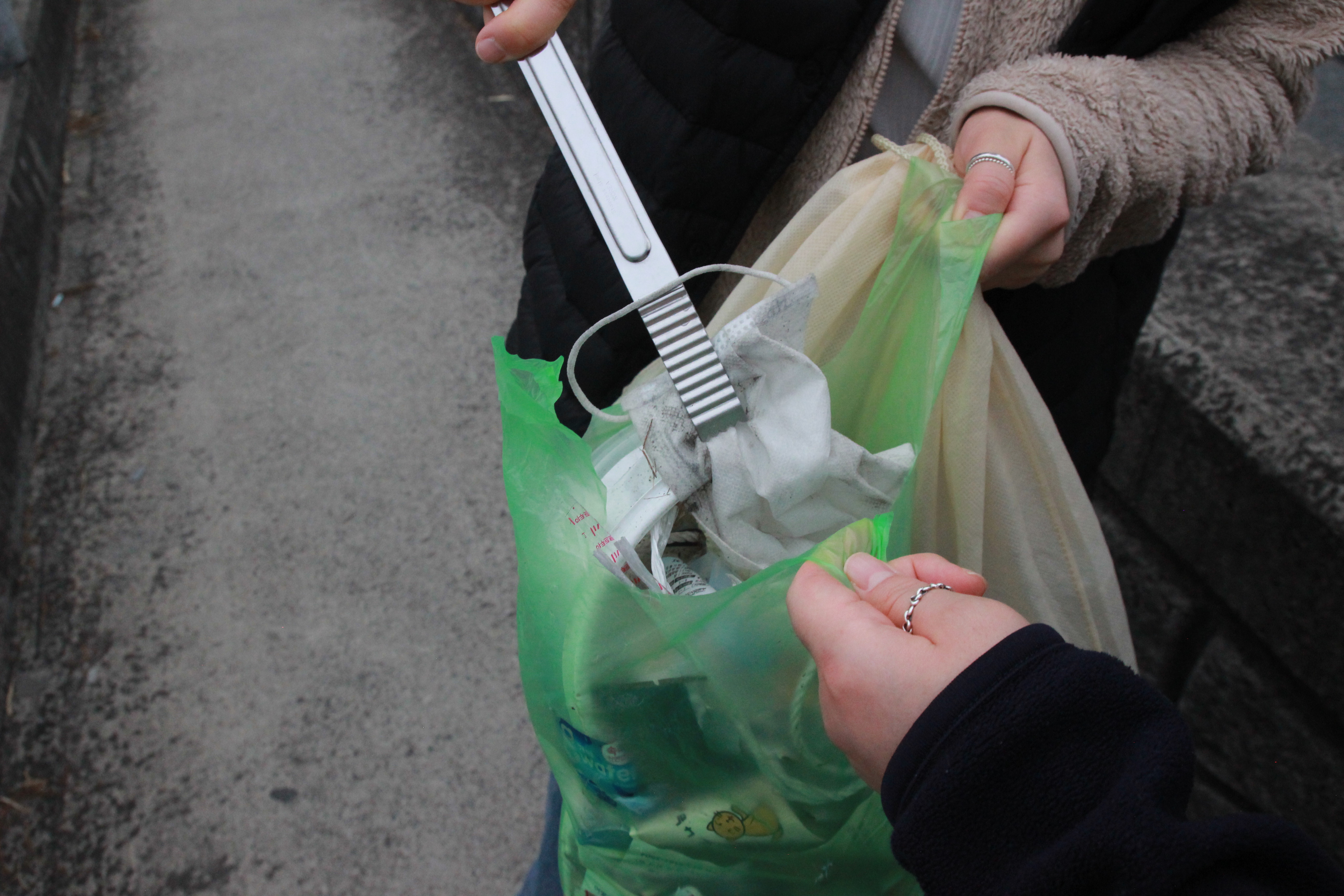 재활용 쓰레기를 담는 봉투는 비닐보다 재사용 가능한 봉투가 좋다. 플로깅 활동 과정에서 생기는 쓰레기를 줄이기 위함이다.