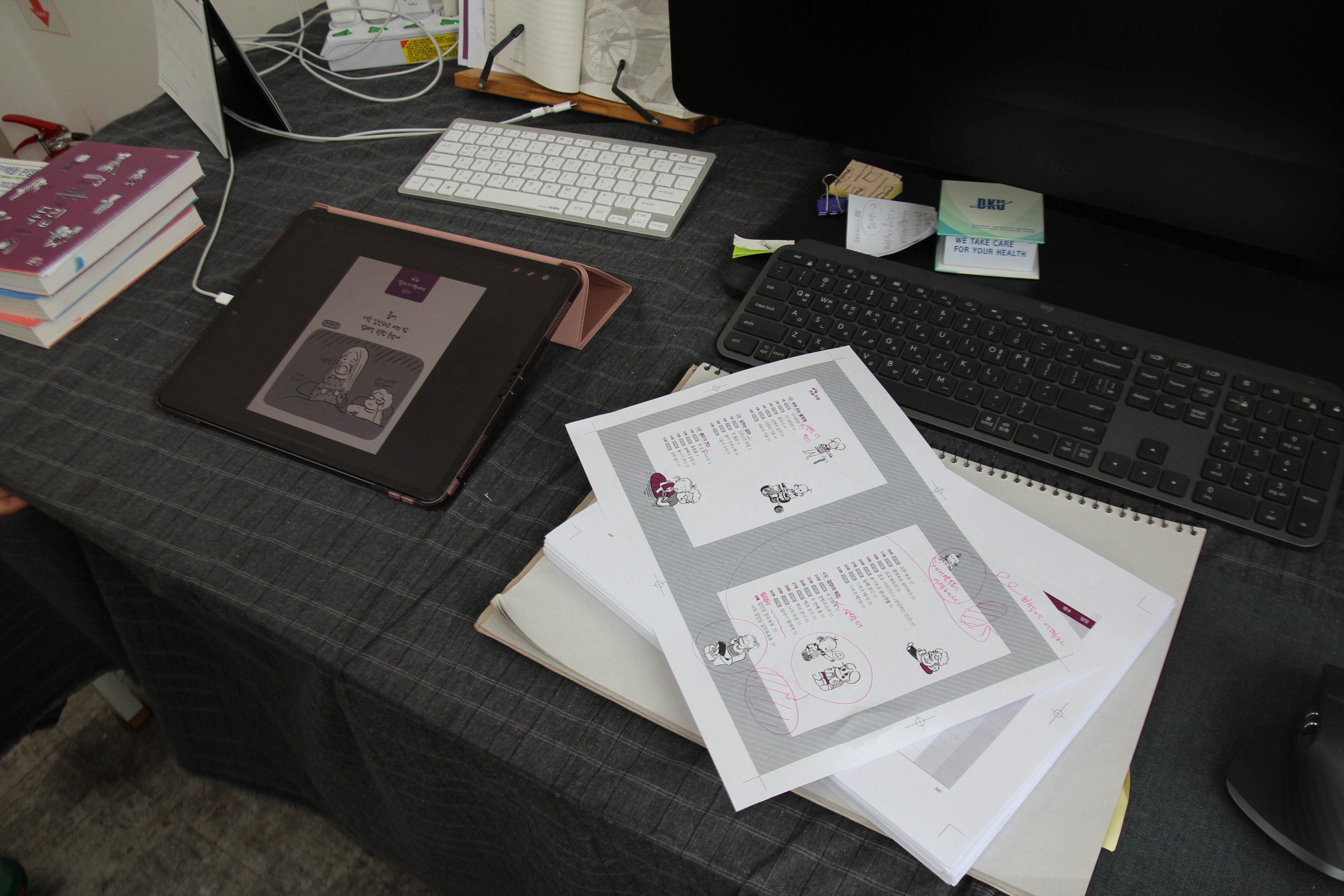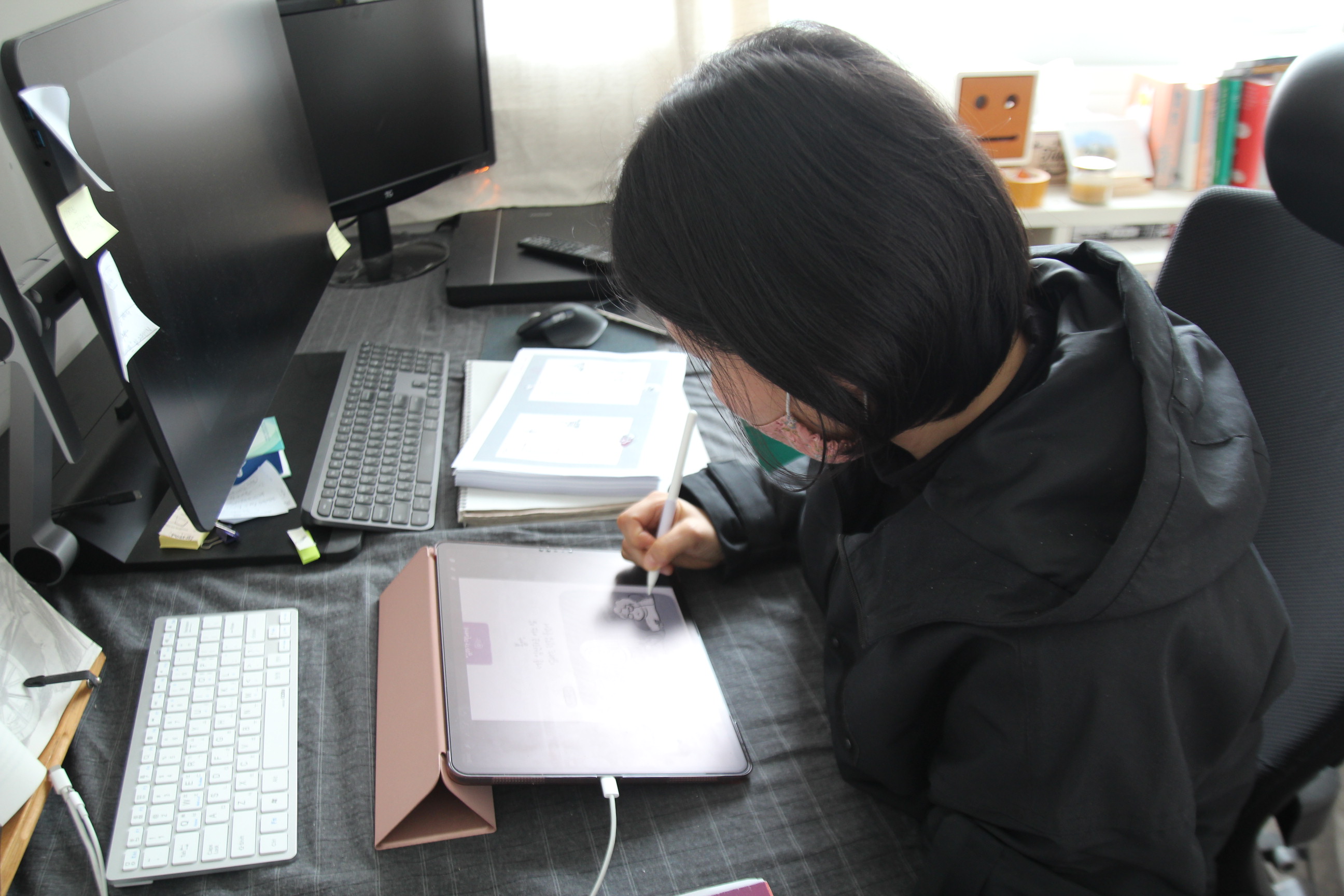 “아이 돌보미 선생님이 오셔서 거실에서 아이를 봐주셨어요. 그때 저는 방에서 작업했고 작년 3월부터 웹툰캠퍼스에서 작업하기 시작했어요. 낮에 돌보미 선생님께서 아이를 봐주실 동안 작업실에 나와 작업을 하고 집에 돌아가서는 아이를 봤어요.”