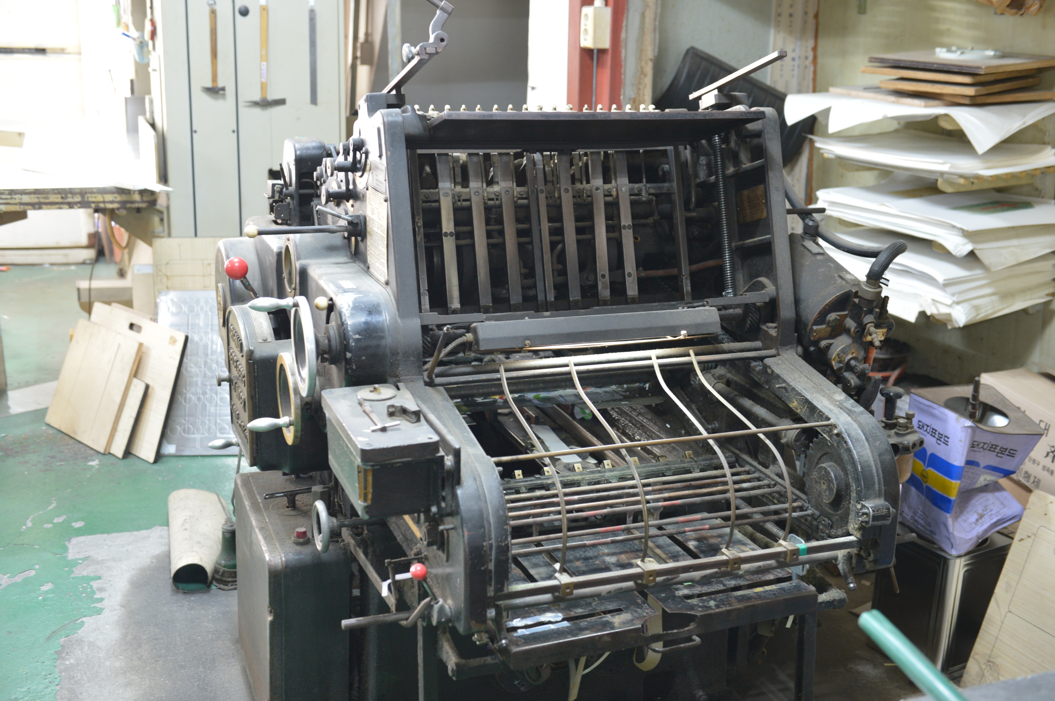 “이 조그만 기계 하나에 일하는 사람이 대여섯 명은 붙었다고, 지금은 대부분 기계가 자동화되어서 이것보다 더 큰 기계라도 나 혼자 충분히 움직일 수 있지만, 예전에는 안 그랬어. 북적거리던 인쇄골목이 조금 한산해진 이유가 그것도 있을 거야.”
